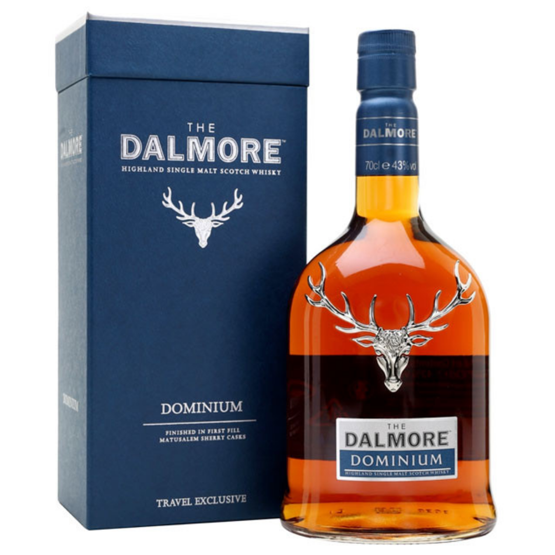 Dalmore Dominium - This Highland singlemalt whisky is part of the Fortuna Meritas collection editions originally released for travel retail and finished in ex-bourbon casks made from American white oak and then finished in first fill old Matusalem Oloroso sherry casks that boasts an intense sweetshop type flavour.