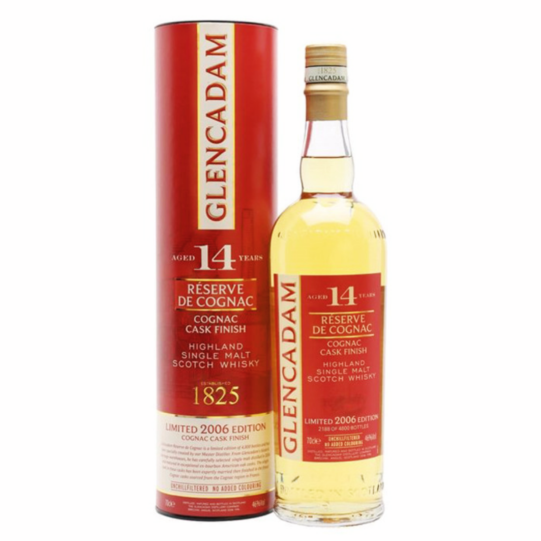 Glencadam 14 years old 2006 Réserve de Cognac - This limited edition Scottish Highland Singlemalt whisky was distilled in 2006 and finished in Cognac cask. A whisky made of French Limousin oak to add depth and complexity, a non-chill filtered and free of added colouring.
