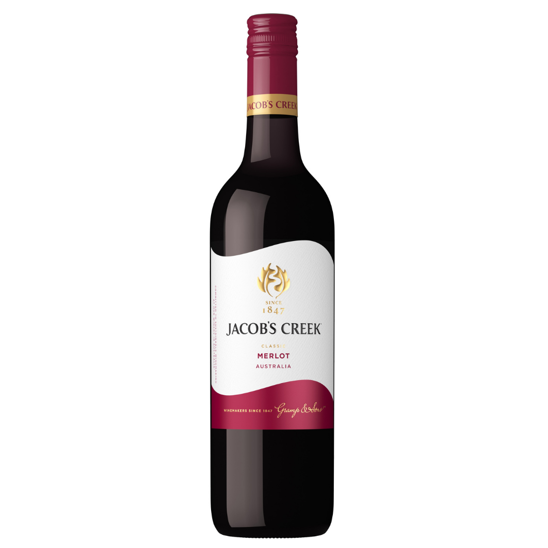 Jacob's Creek Merlot - This Classic Australian expression has generous fruit and a savory backbone that combined with its soft tannins, make it a very food-friendly wine with medium body and a soft, approachable style.