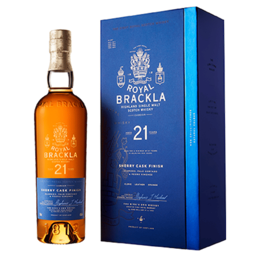 Royal Brackla 21 Year Old- This Highland Single Malt Scotch whisky is aged for minimum of 21 years in a selected oak cask and the oldest of Three Expressions of Royal Brackla series. This whisky was finished in a combination of Oloroso, Paolo Cortado, and Pedro Ximénez sherry casks and The king's Own Whisky Granted First Royal Warrant by King William Iv in 1833. It's a serious and distinguished whisky expression that is fragrant and rich with beautiful sherried notes.