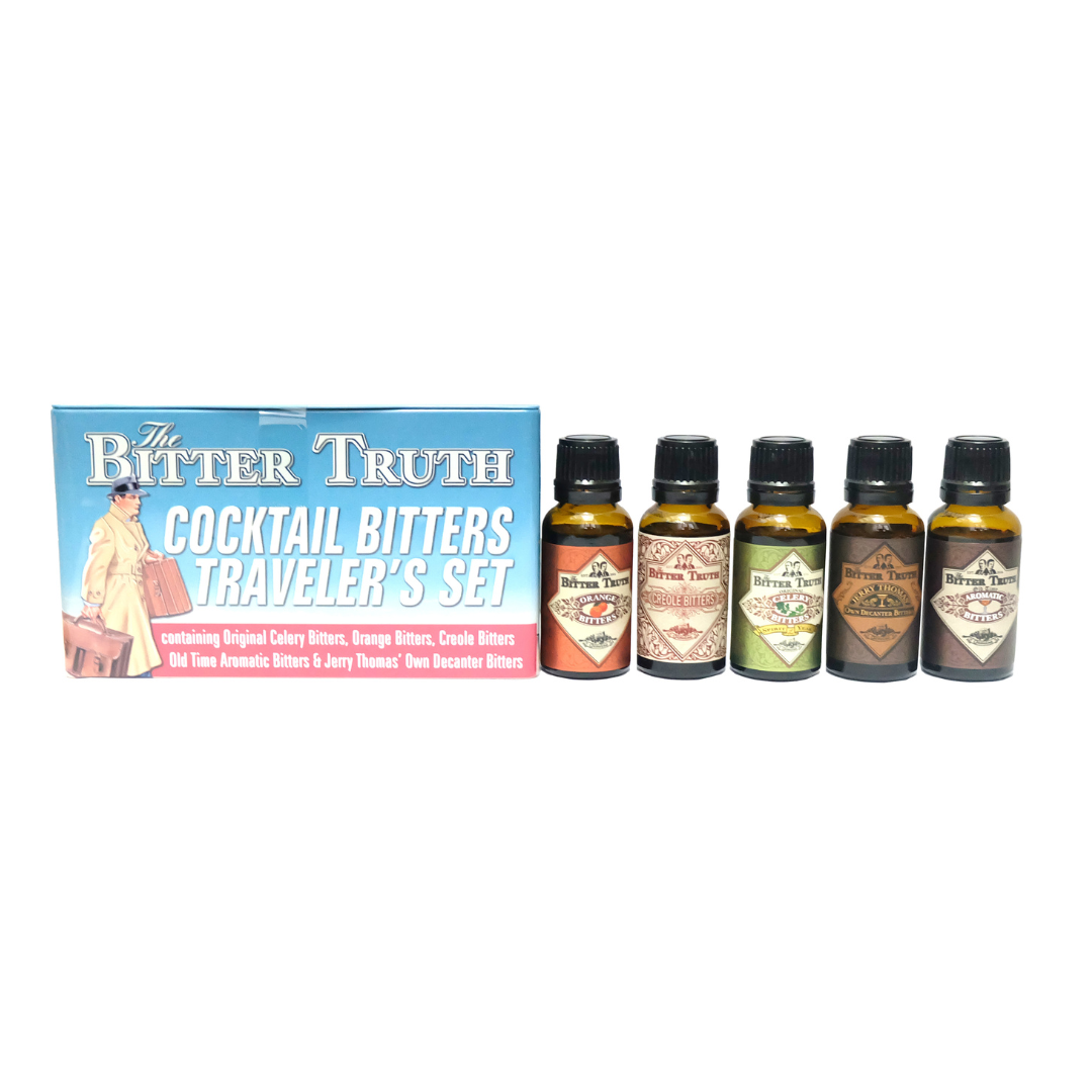 Bitter Truth 鸡尾酒 Bitters 旅行者套装 - 这套五种不同口味的套装装在设计可爱的锡盒中,芹菜/橙子/克里奥尔/旧时芳香和 Jerry Thomas 自己的醒酒器,该套装也是任何人家庭酒吧的完美补充。